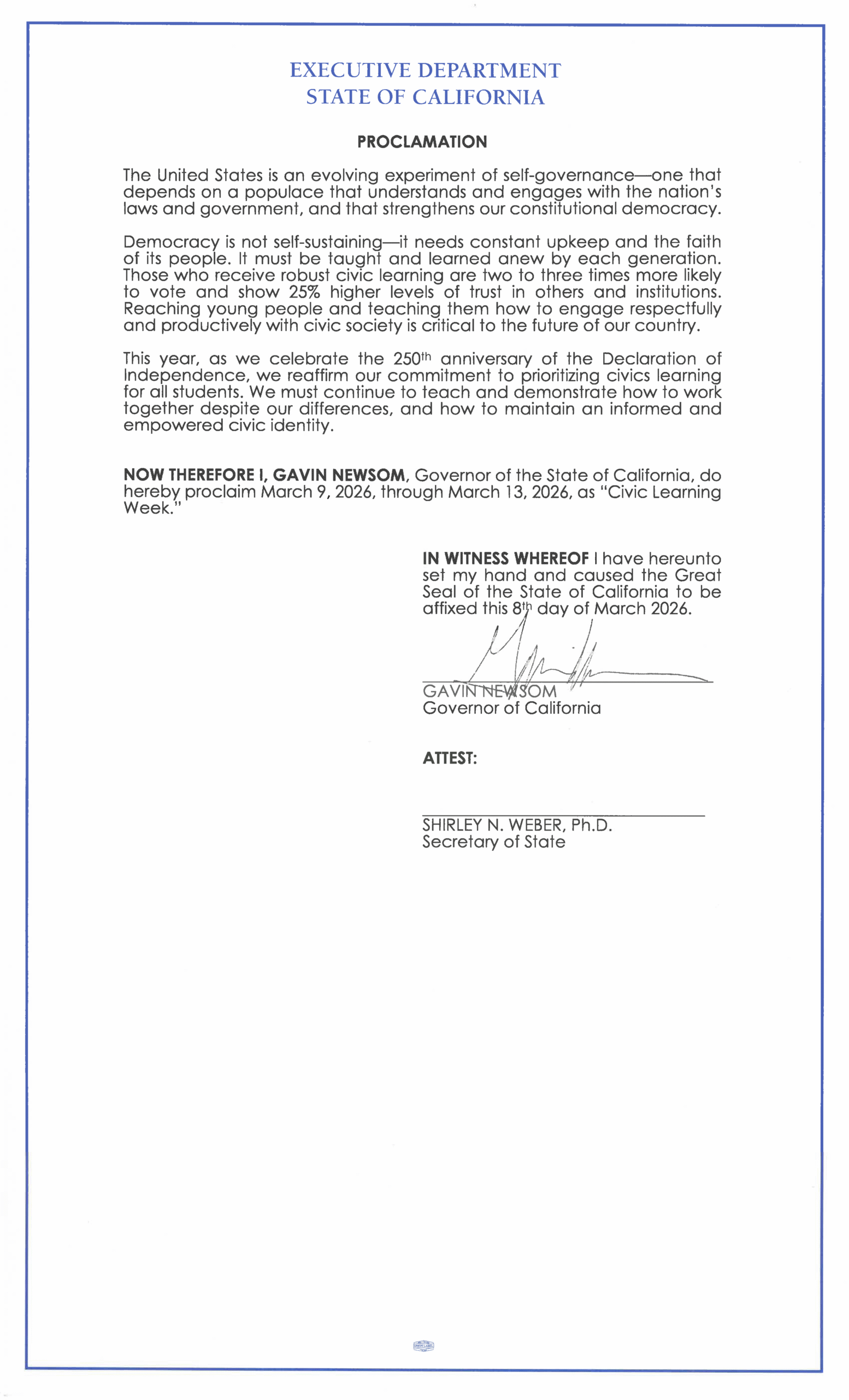 Governor Gavin Newsom’s Civic Learning Week Proclamation